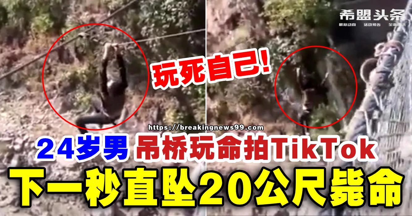 尼泊尔一名24岁的年轻男子塔帕(Ramesh Thapa),日前与数名友人到一处吊桥旅游,塔帕突然向其朋友提议为自己拍视频,说着就跑到吊桥桥面外抓住绳索,朋友也在桥边拿起手机拍摄视频,结果塔帕却无力将自力拉回桥面,在朋友们面前直直坠落桥下,送医抢救后于周一宣告不治。