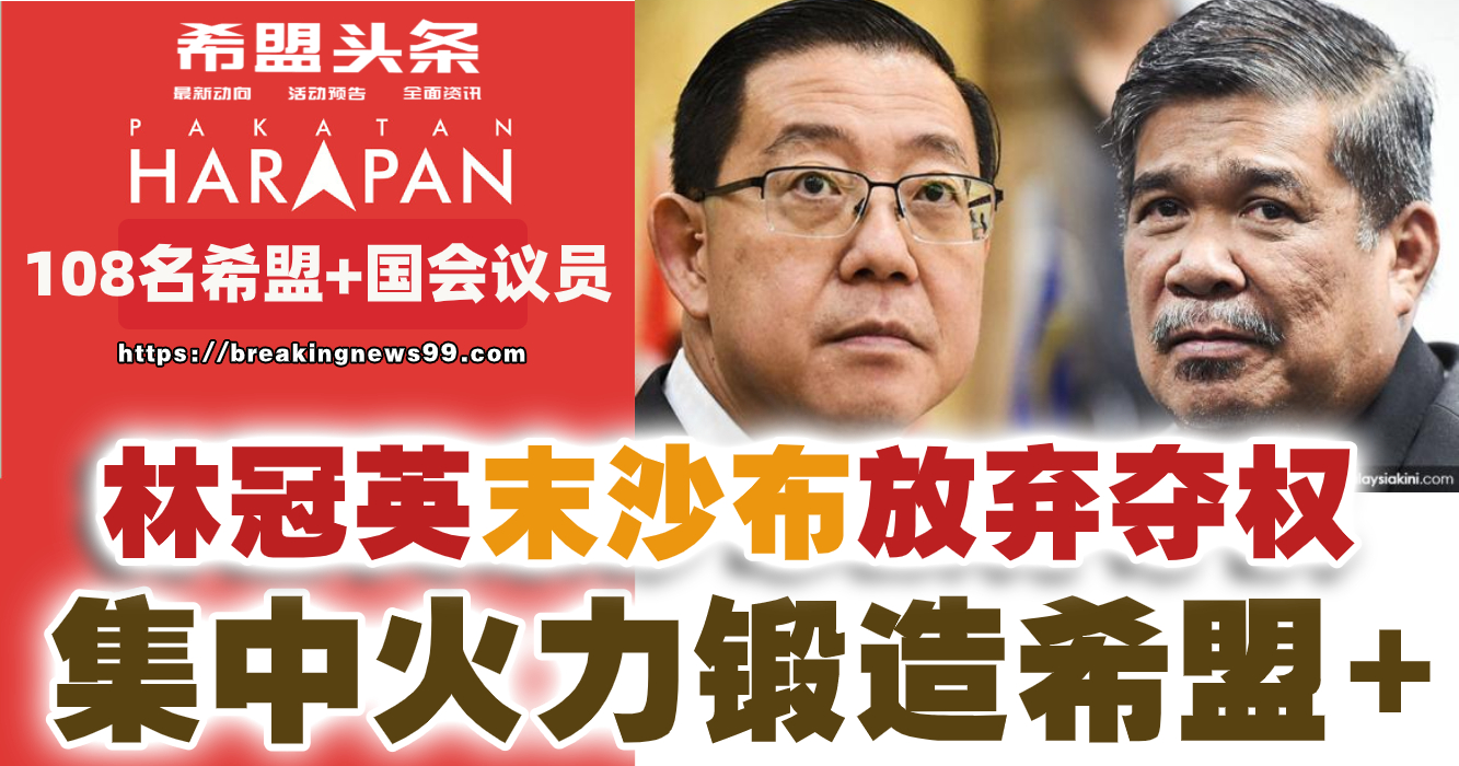 林冠英和末沙布建议,现在的重点应该是巩固希盟+,希盟拥有108名议员,其中92名来自希盟、民兴党、斗士党和2名独立议员。