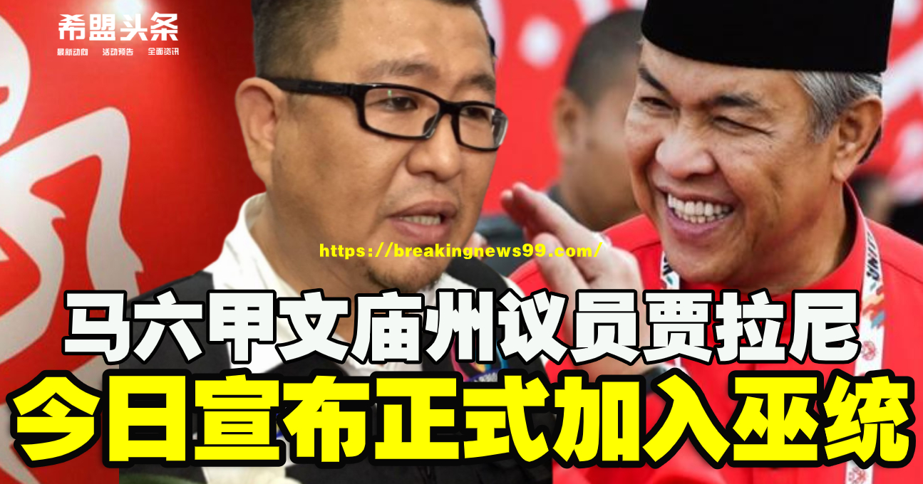 9个月前“马六甲变天”退出公正党后、文庙区州议员拿督贾拉尼,今日宣布重返巫统怀抱!