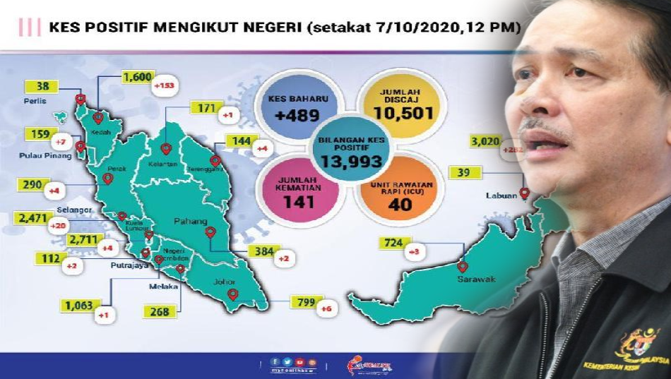卫生总监丹斯里诺希山发文告指出,截至今日中午12时,大马累计1万3933宗确诊病例。
