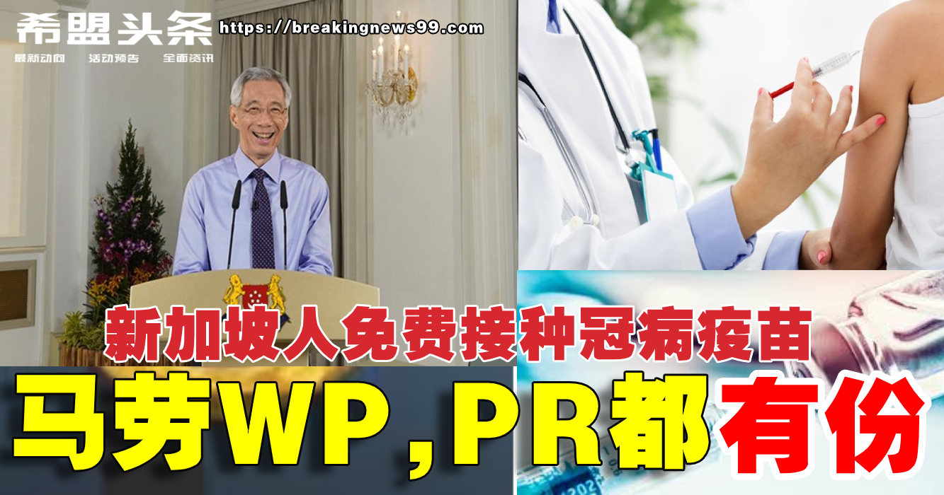 新加坡李显龙总理宣布,所有新加坡公民、长期居住在新加坡的居民、以及客工等长期工作准证持有人,都可以获得免费注射新冠肺炎病毒疫苗!