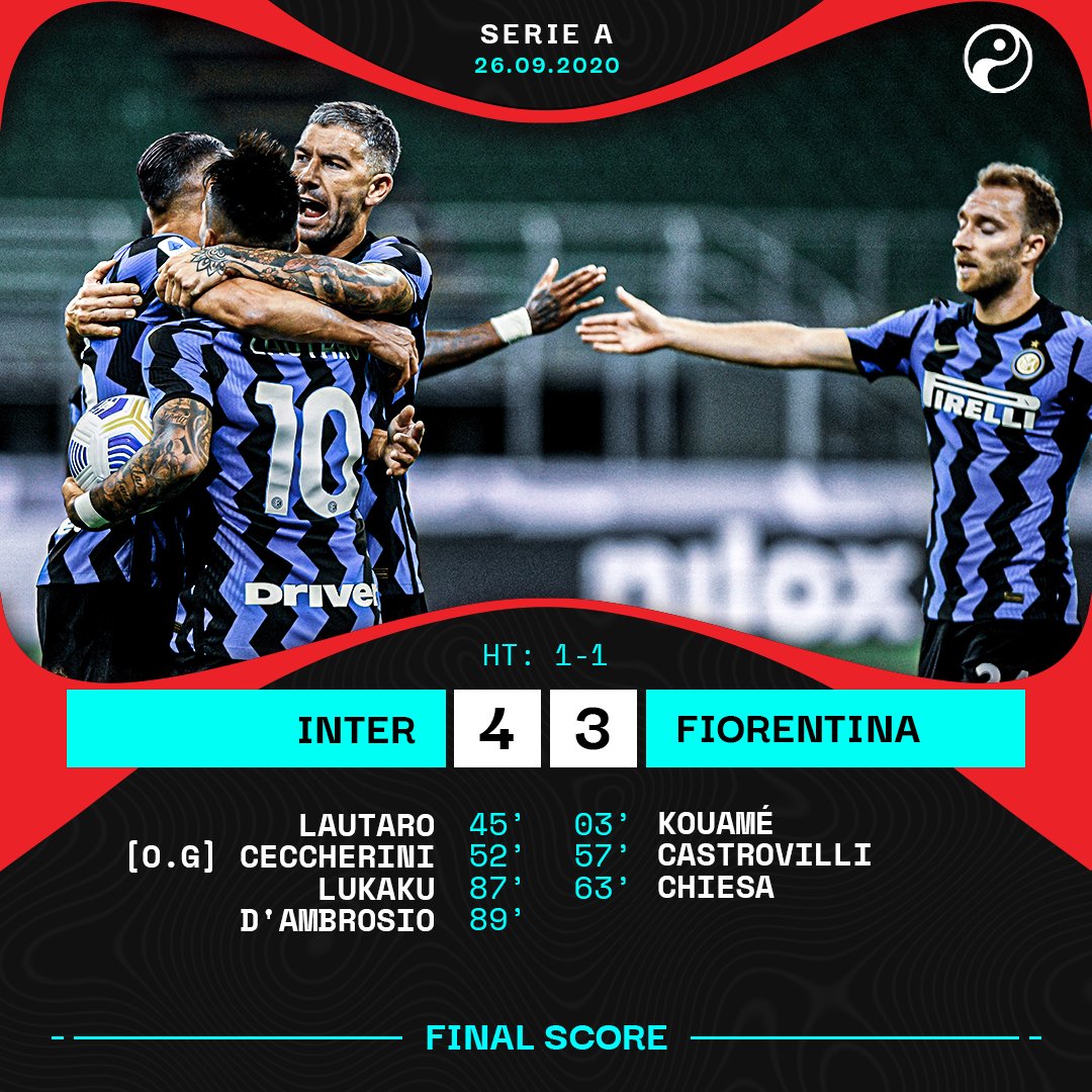 9月27日讯 本轮意甲联赛,国米凭借卢卡库和丹布罗西奥在最后时刻的进球,4-3战胜了佛罗伦萨。
