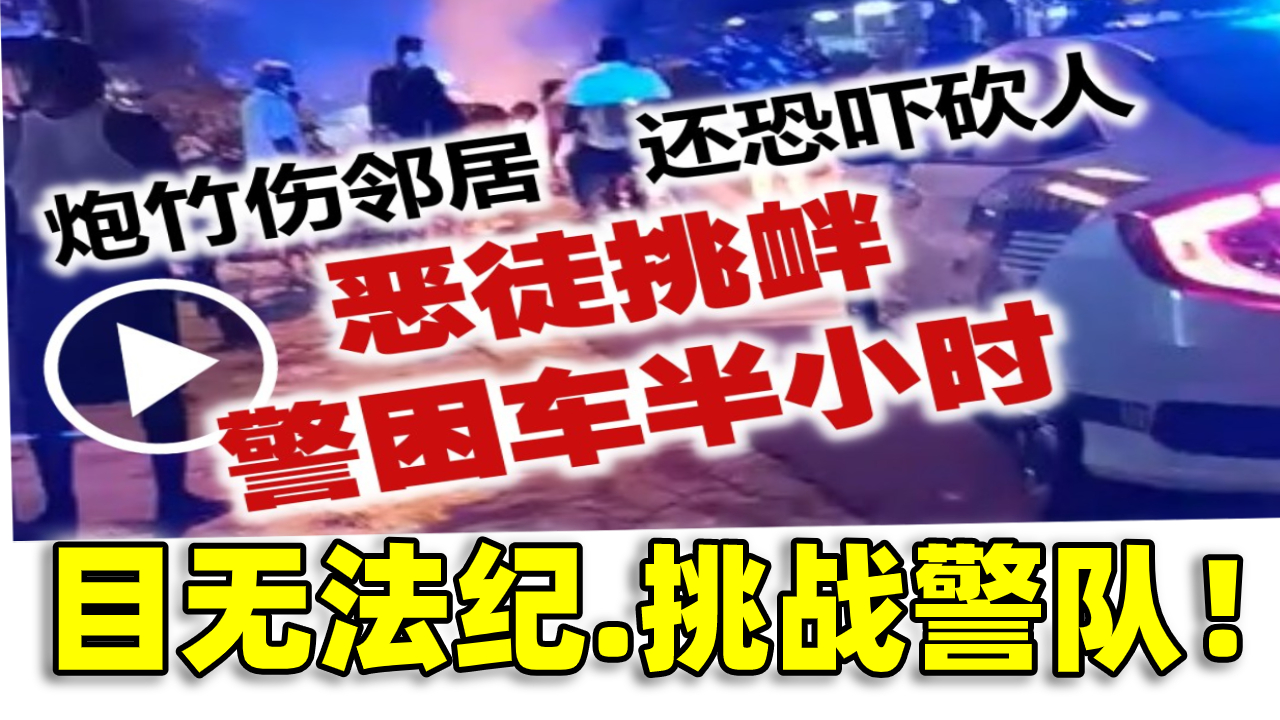 沙登警方接获投报抵达现场后,大批恶徒更斗胆在警用巡逻车前放鞭炮挑衅,令警员受困车内30分钟,视王法为无物!